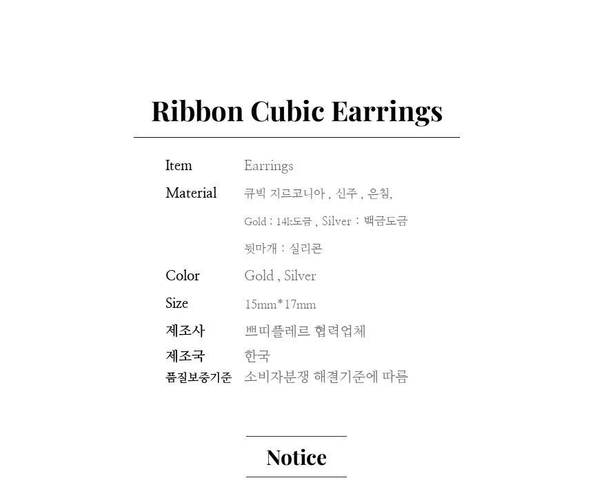 14k,로듐 리본 큐빅 귀걸이 NO.1 *무료배송*