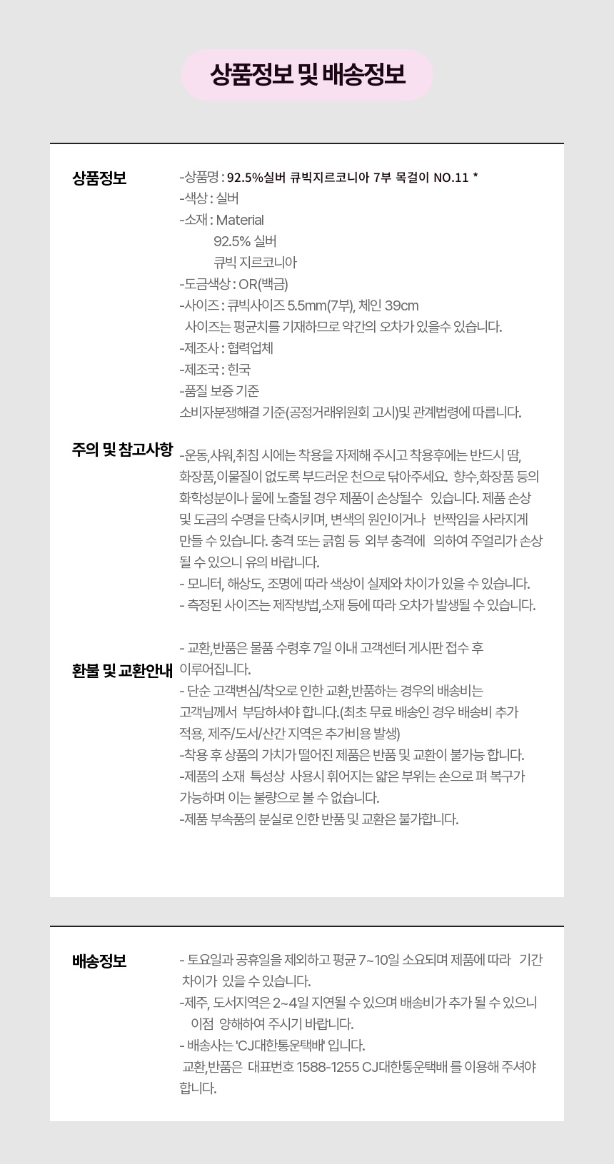 925실버 큐빅지르코니아 7부 목걸이 No.11 *무료배송*