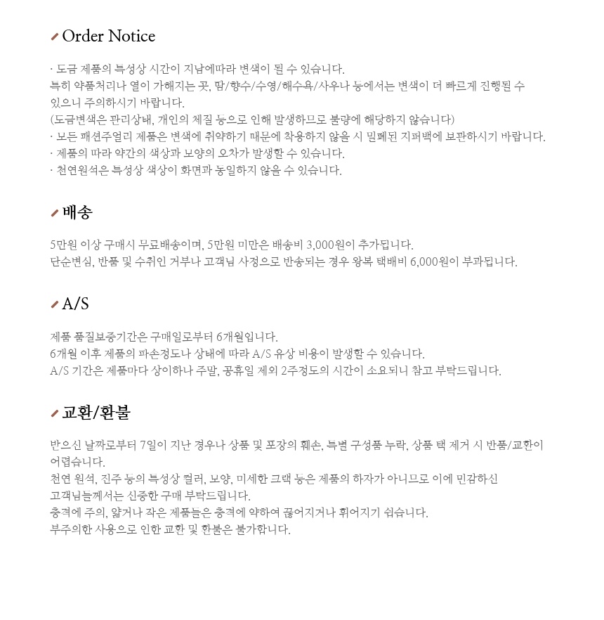 ※ 상품사이즈 치수는 재는 방법과 위치에 따라 1~3cm 오차가 있을 수 있습니다.