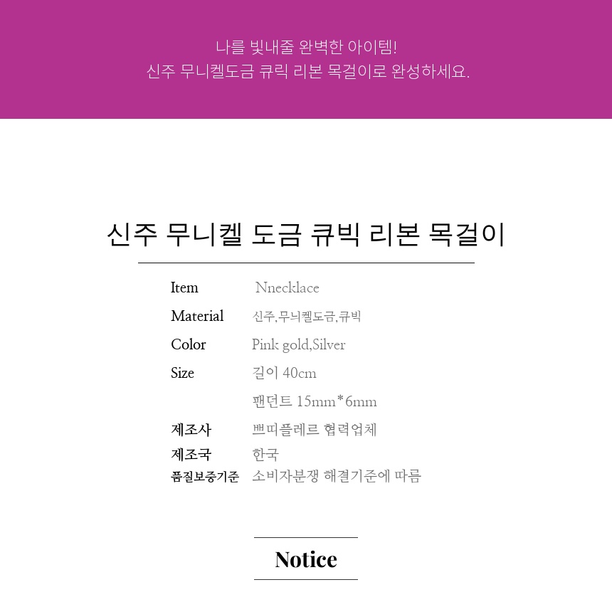신주 무니켈 도금 큐빅 리본 목걸이 No.26